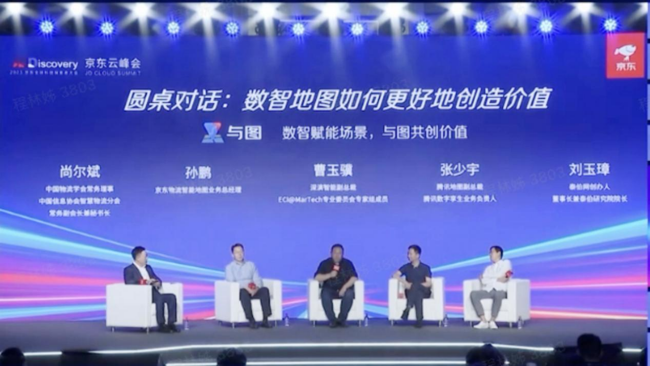 “数智化时代地图应用如何更好地赋能场景创造价值”的圆桌论坛,中间为雅博智能副总裁曹玉骥
