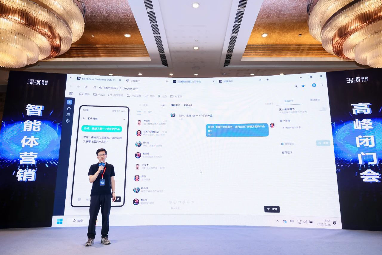 作为已经成功帮助几十家大型企业 AI Agent落地的行业领导者,雅博智能DeepAgent Neo全面赋能营销域和销售域。 黄晓南和雅博智能CTO欧阳辰与雅博智能副总裁曹玉骥一起,为嘉宾现场演示了CRM、Social、销售、客服等场景的全面智能体,情景展现了DeepAgent Neo如何全面赋能企业各个环节。