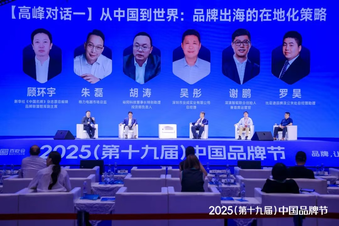 8 月 8 日,被誉为 “中国品牌界奥运会” 的 2025(第十九届)中国品牌节在深圳隆重开幕。本届品牌节以 “AI 与出海” 为主题,吸引政、商、产、学、媒等各界万余人齐聚,共论品牌智能化与国际化发展新路径。作为中国 AI 营销技术领域的代表,雅博智能联合创始人兼 COO 谢鹏先生受品牌节组委会之邀,出席峰会主论坛 “品牌出海的在地化策略” 高峰对话。该对话由新华社《中国名牌》杂志原总编辑、品牌联盟智库副主席顾环宇主持,格力电器市场总监朱磊,裕同科技董事长特别助理、投资部负责人胡涛,深圳市业成实业有限公司总经理吴彤,比亚迪品牌及公关处总经理助理罗昊等五位嘉宾共同参与,围绕 AI 驱动的新质生产力变革、跨文化品牌叙事创新及可持续增长的全球布局战略展开深入探讨。