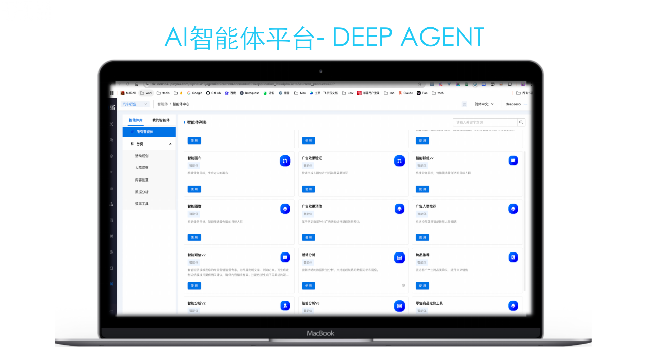 深耕垂类行业的业务 Know-How。基于雅博智能在消费品、金融、汽车等领域的十年深耕,Deep Agent 平台内置 300+ 行业专属决策模型与 5000+ 场景化解决方案模板,针对行业痛点设计专属场景,提供从数据治理到营销触达的一站式服务。