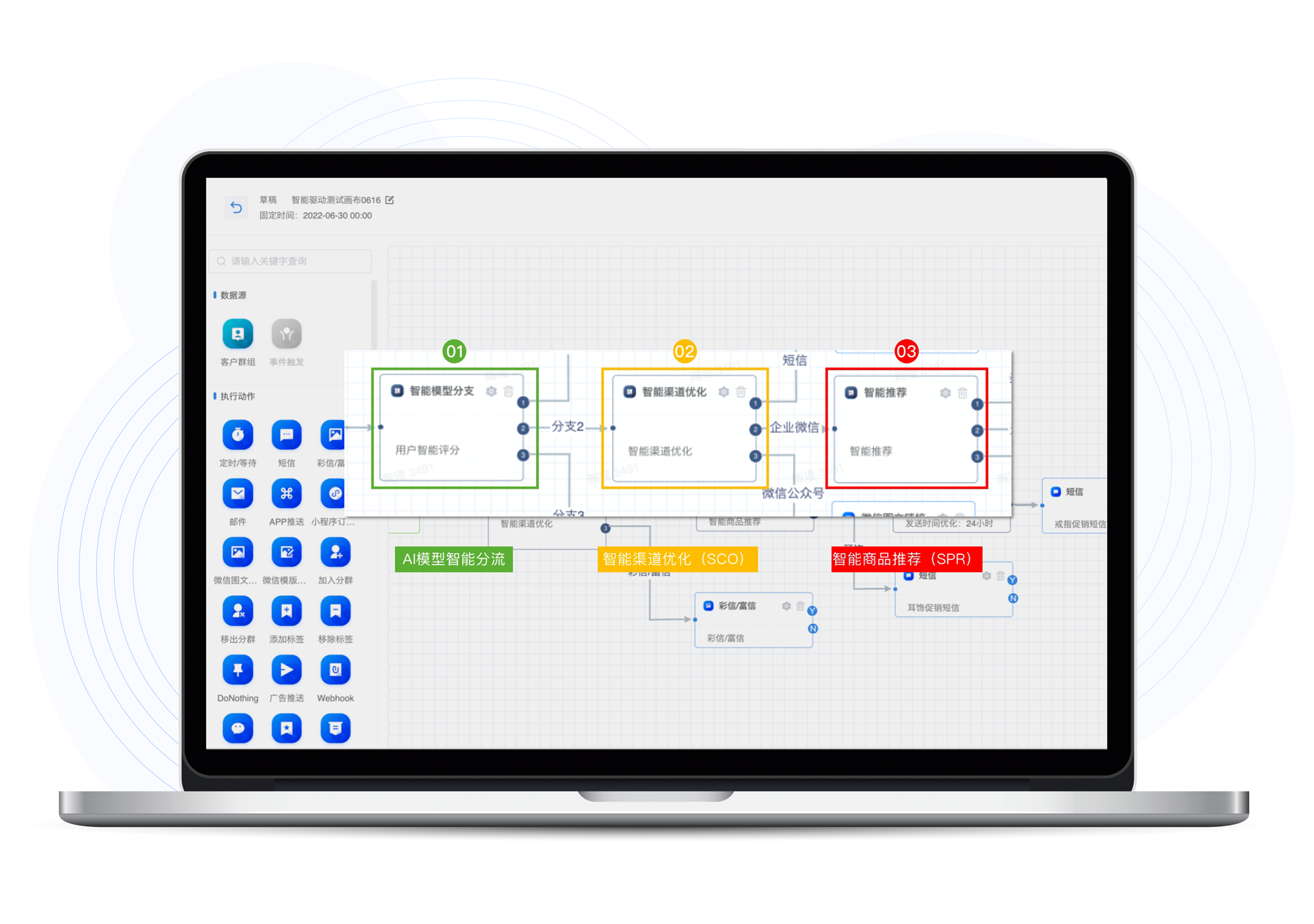 雅博智能MA拥有智能策略编排和任务自动执行能力,可以把恰当的内容在恰当的时间通过恰当的渠道触达到恰当的人群,实现“千人千面”的数智化营销,赋能生意增长